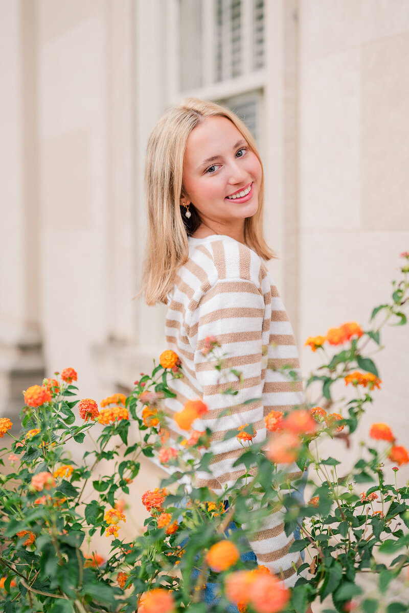 Everything is in bloom, the colors outside are bright and soft, and you’re gearing up for the last few weeks of senior year. If you have chosen a college, you can use your new gear for a few pictures too!